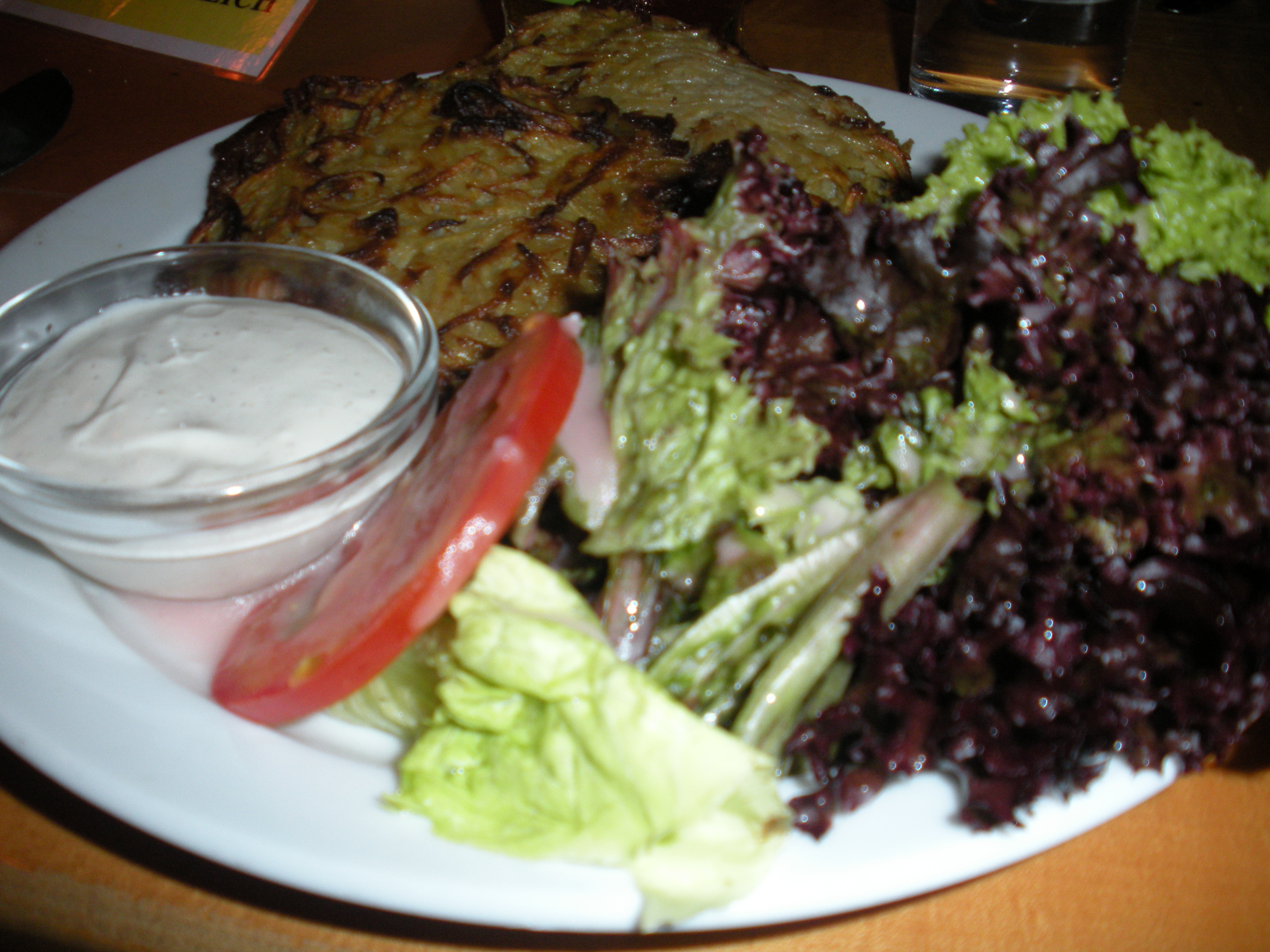 Last night I had planned to attend the Multi-Faith Prayer Gathering at Votivkirche and the Human Rights March and Rally, but I was feeling extremely tired and in need of a beer. Instead, I ate dinner near my hotel at a little side-walk cafe called Restaurant Ausgarten. Dinner consisted of an Austrian lager (thankfully European restaurants generally serve beer in aspecial glass for each featured beer), an excellent mixed salad, Serbian style pike perch lightly fried and served with a gravy, and roasted potatoes.