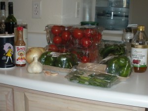 Step 2: To make the salsa nice and spicy you will need 5 cups of chopped tomatoes, 2 1/2 cups of chopped & seeded green bell peppers, 2 1/2 cups chopped onions, 1 1/2 cups of chopped & seeded jalapenos, 2/3 cup apple cider vinegar, 4 finely chopped garlic cloves, 2 tablespoons cilantro, 1 1/2 teaspoons salt, 3 tablespoons hot pepper sauce (i.e. Tabasco or Tapatio), 1 teaspoon Cayenne pepper, and 1/2 teaspoon chili powder.