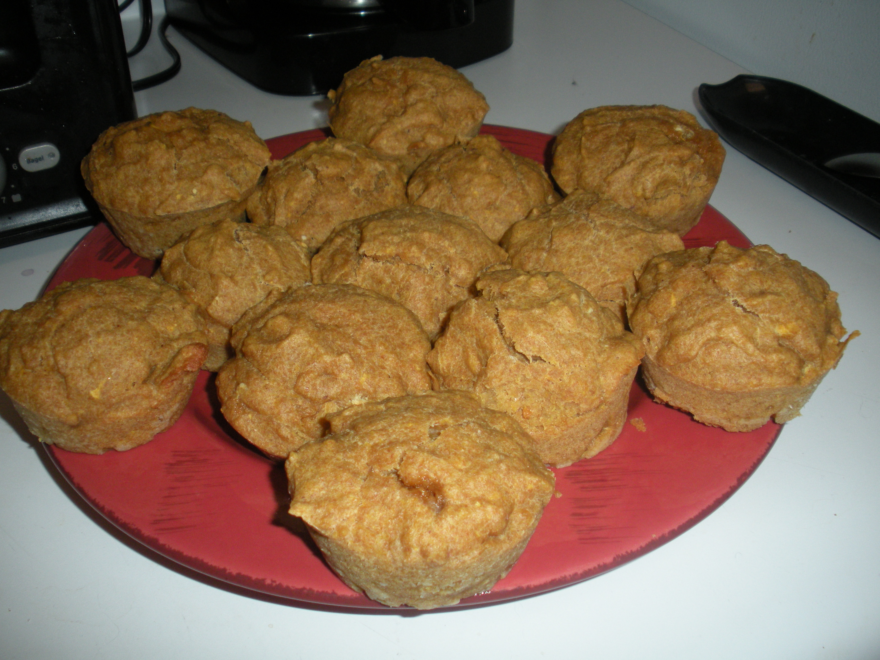 Bake for 20 minutes. Remove from oven and let cool for 5 minutes in the tin before the muffins are ready to serve. This recipe makes about 20 muffins.