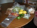 I was quite pleased with how far my $40 went – organic spinach and garlic fettuccine, dates, kalamata olive bread, arugula, cucumber, lemons, jalapenos, coffee, lemon balm/nettle/dandelion tea blend, and cherry tomatoes. Good eating for at least couple days and every thing comes from either southern Nevada or just across the border in eastern California!