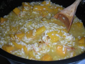 When all that liquid is absorbed, add the butternut squash and the final cup of broth.