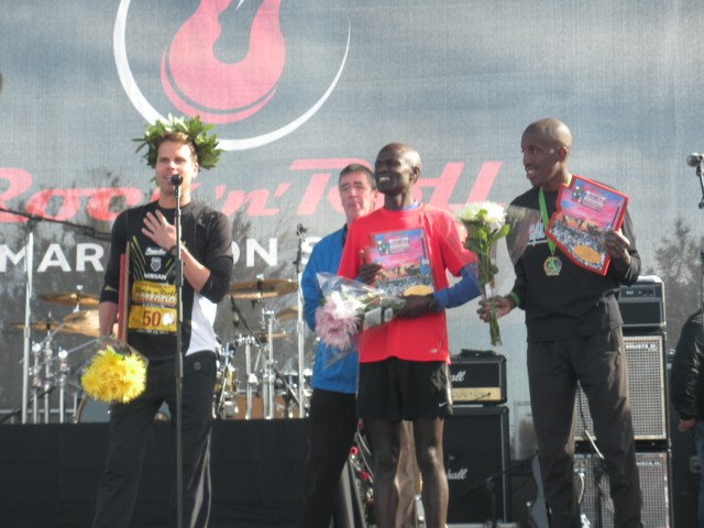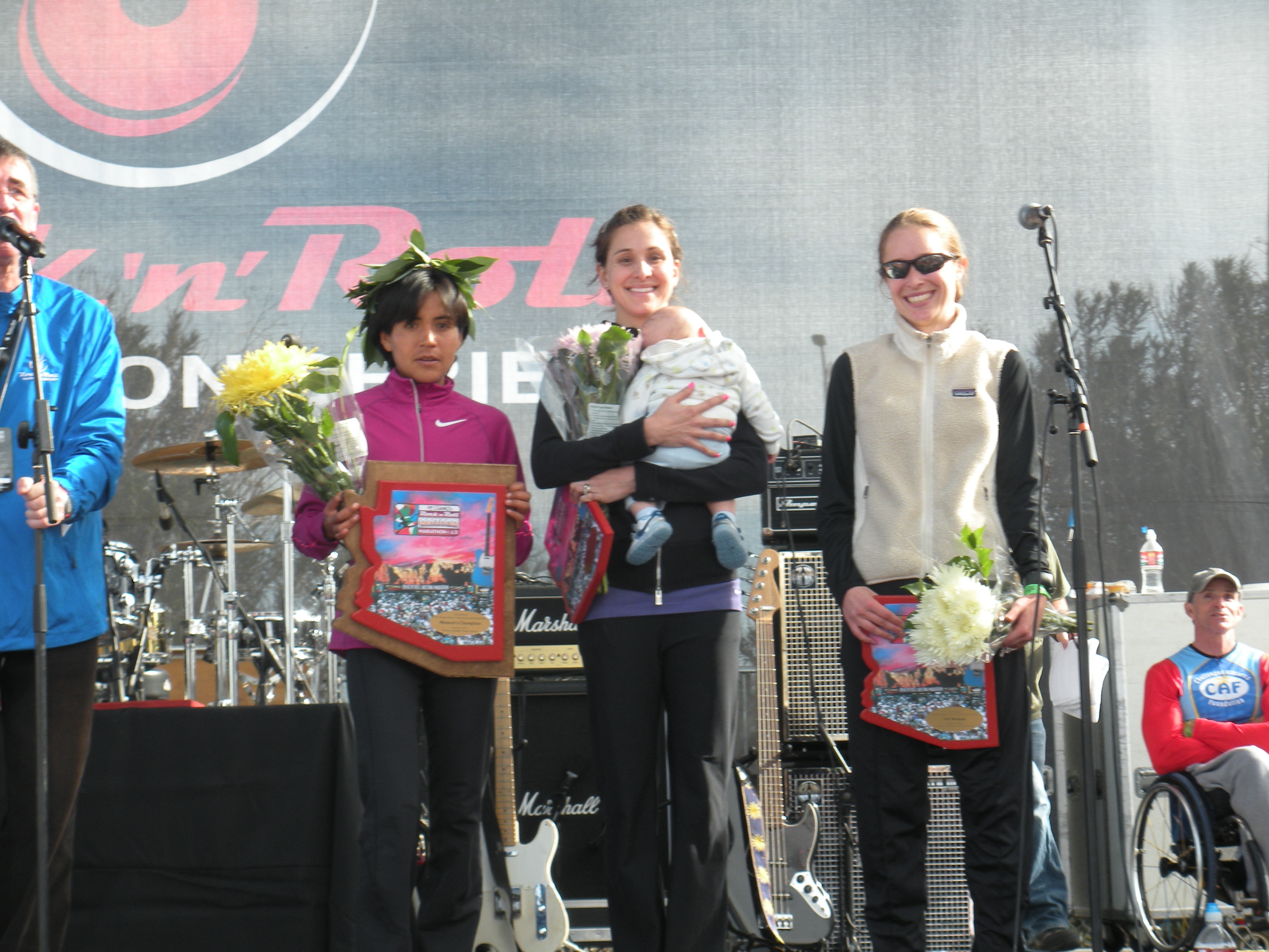 The top 3 female half-marathon finishers. It's amazing that the 2nd place finisher just gave birth in September and she's already back and almost winning races.