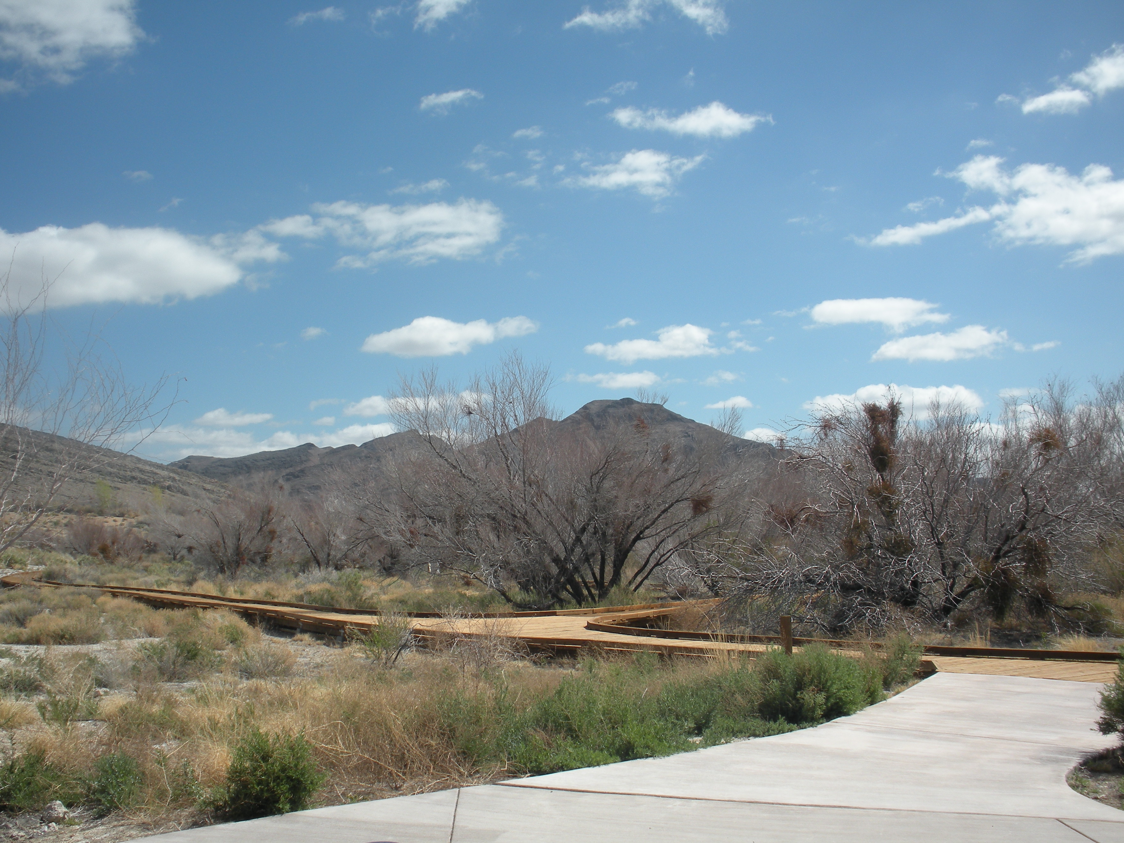 Ash Meadows was established in 1984 and encompasses 23,000 acres near Amargosa Valley in Nye County, Nevada. Geographically speaking, it’s about 30 miles west of Pahrump and 90 miles northwest of Las Vegas. Directions to the refuge may be found on their website. The park is good for bird-watching, picnicing, hiking and there’s also swimming at Crystal Spring (though it was closed when we were there). While you can also occasionally see bighorn sheep and coyotes, the big faunal attraction of the park is the rare Desert Pupfish.
