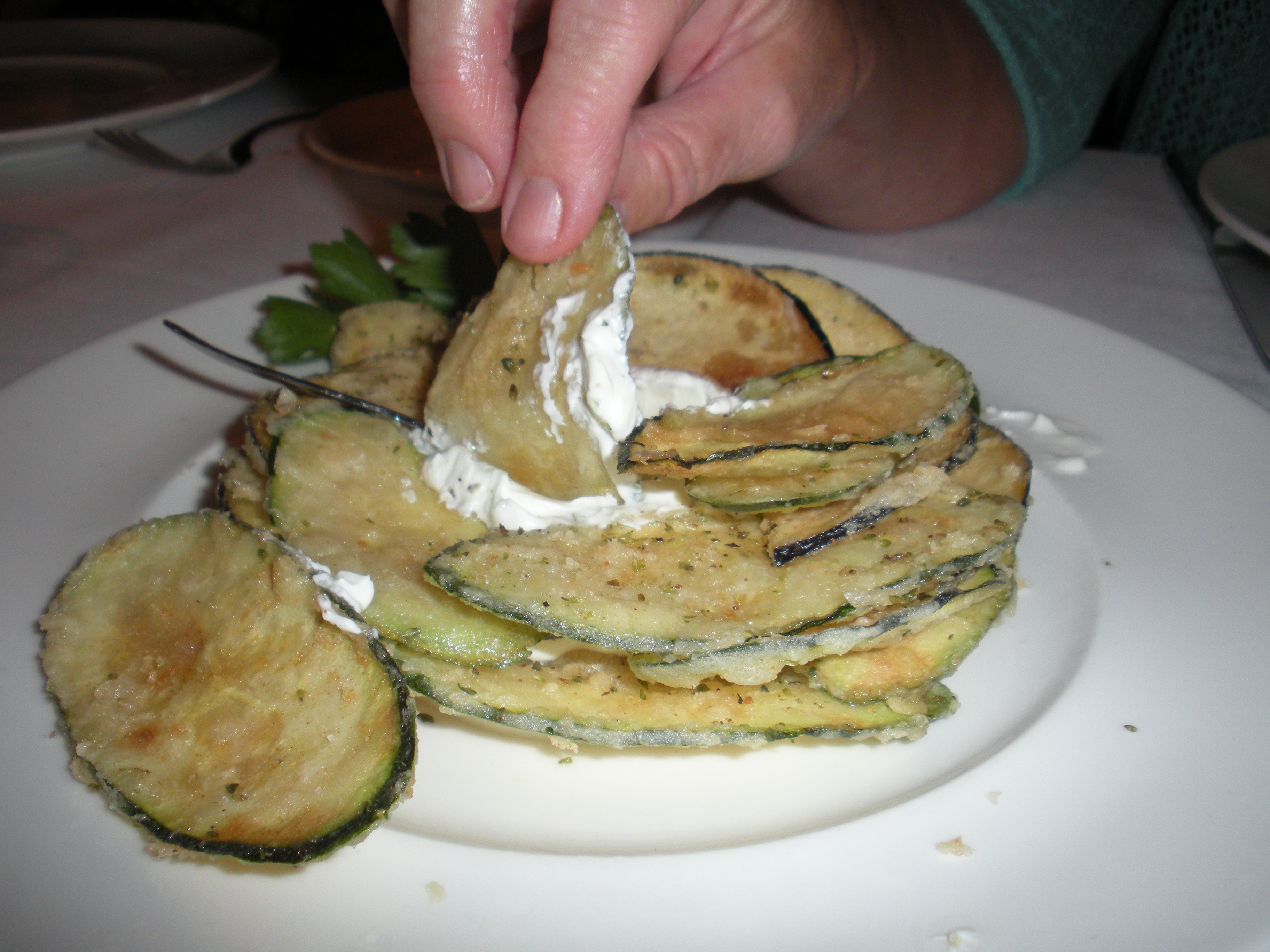 For appetizers, we tried some of their signature items. These zucchini chips with tzatziki, also known as “Milos Special,” were the best!