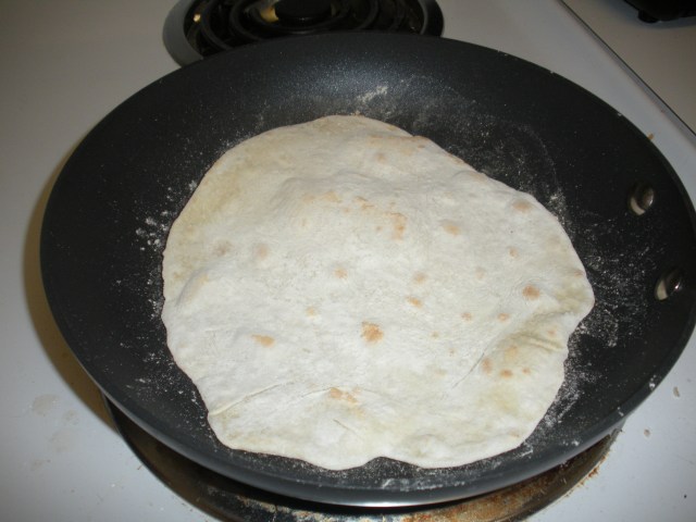 Heat a non-stick skillet over medium heat. You don’t need to use any oil or butter in the pan. Cook each tortilla for 90 seconds on each side.