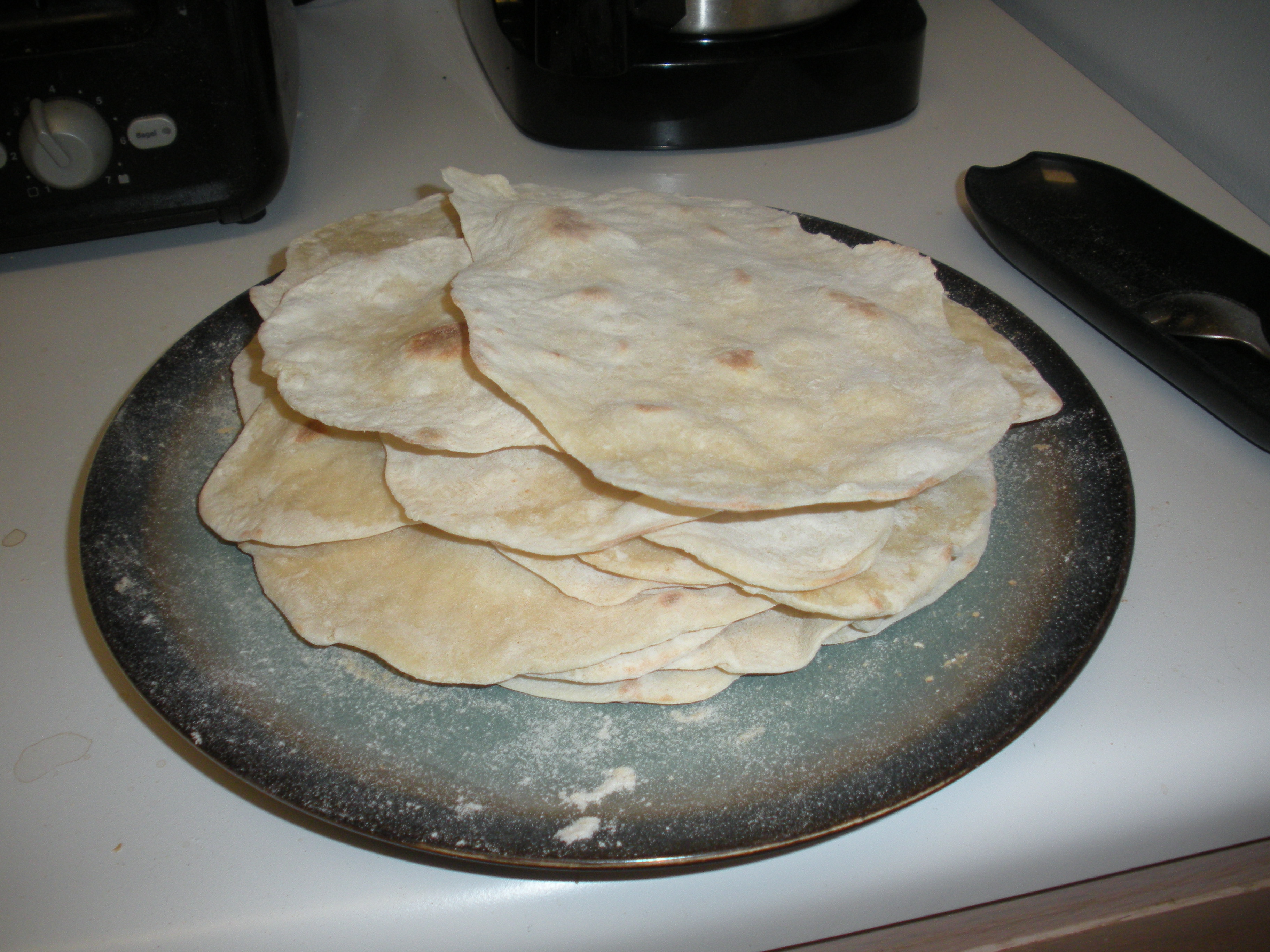 It turns out that making tortillas from scratch is super simple (way simpler than baking bread from scratch and almost as easy as homemade pizza dough). To make 12 tortillas, all the ingredients you’ll need are 2 cups of flour (plus a bit extra for rolling out your dough), 1 tsp. salt, 1 tsp. baking powder, 1 Tbsp. butter, and about 3/4 cup of warm water. Tortillas from scratch are apparently cheap too, as that comes out to less than 5 cents per tortilla.