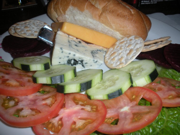 Since the organizer of the book group is British, we met at Crown & Anchor Pub, a British pub near UNLV. I had a pint of Old Speckled Hen and the Ploughmans Lunch — complete with English cheeses, bread, tomatoes, cucumbers, beets and Branston Pickle.