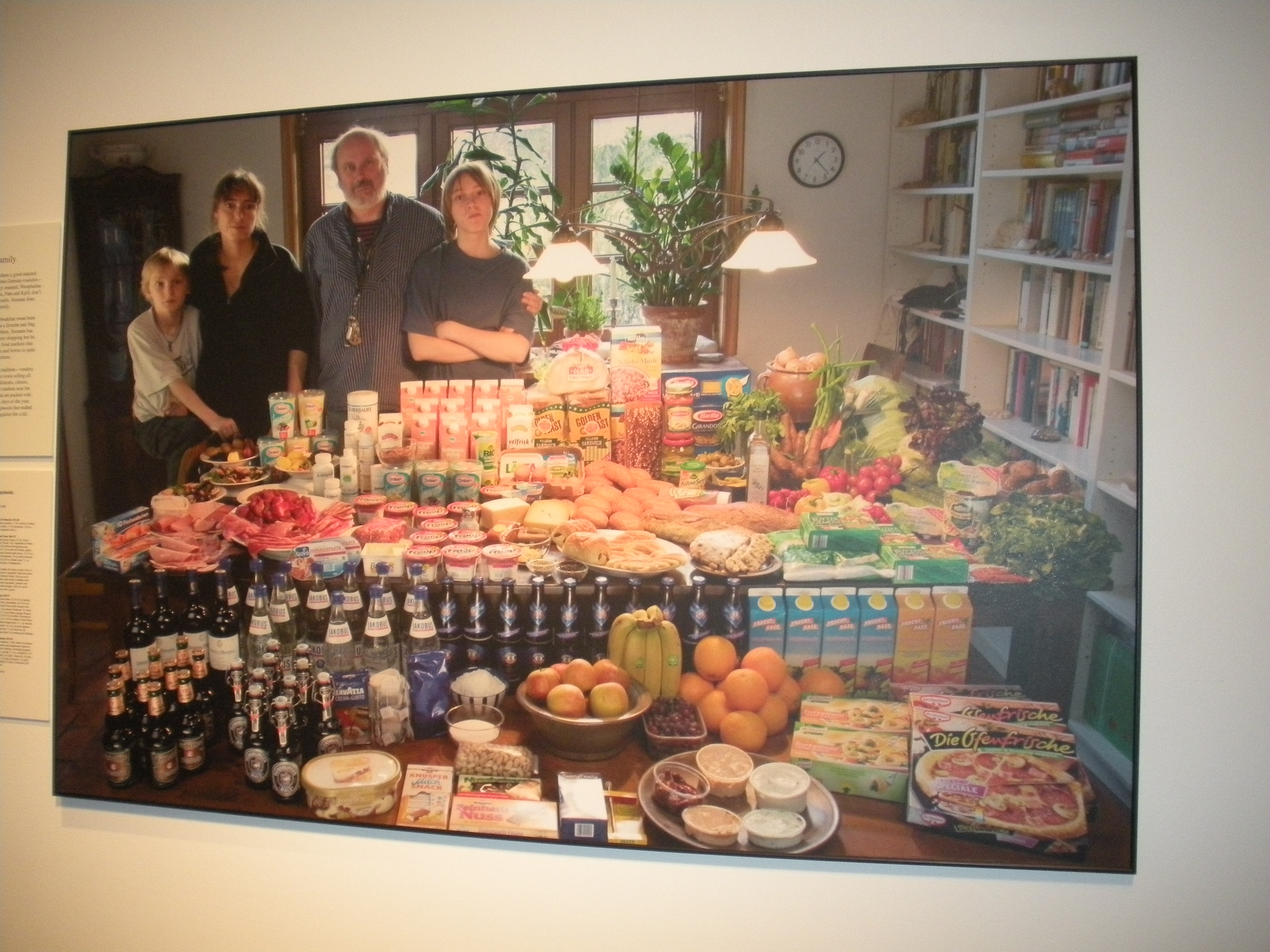 The exhibit featured 10 families from various parts of the world, and included photographs of the families surrounded by a week’s worth of groceries, local markets and meal times. Additional text listed how much the family spent on food in a given week (both in local currency and in US dollars) and broke down food consumption by major food group.