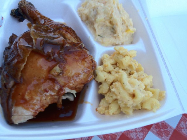 For dinner there were three different barbecue restaurants to choose from: H&H Barbeque, Austin Blues Bar-B-Q and Lone Coyote Smokehouse & Grill. Since the latter two only had beef and pork on their menus, I chose H&H Barbeque, well worth the 40 minute wait. My combo meal included two pieces of barbecue chicken, macaroni and cheese and potato salad. The potato salad was the best part.