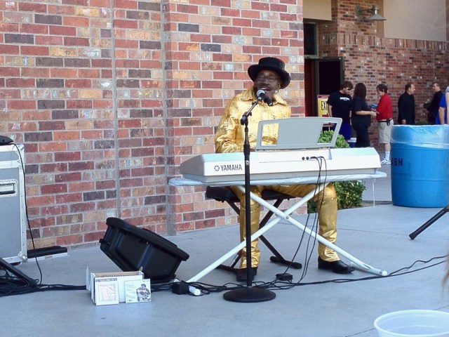 As we’re veterans at the event, we knew to arrive early to get a table in the shade. We also wanted to be close to Ironing Board Sam, a 72-year-old keyboardist/vocalist who sets up his keyboard on top of an ironing board. He is the “between acts” performer, but for my family, was really the highlight of the event. For yesterday’s performance, he wore a gold lamé jumpsuit.