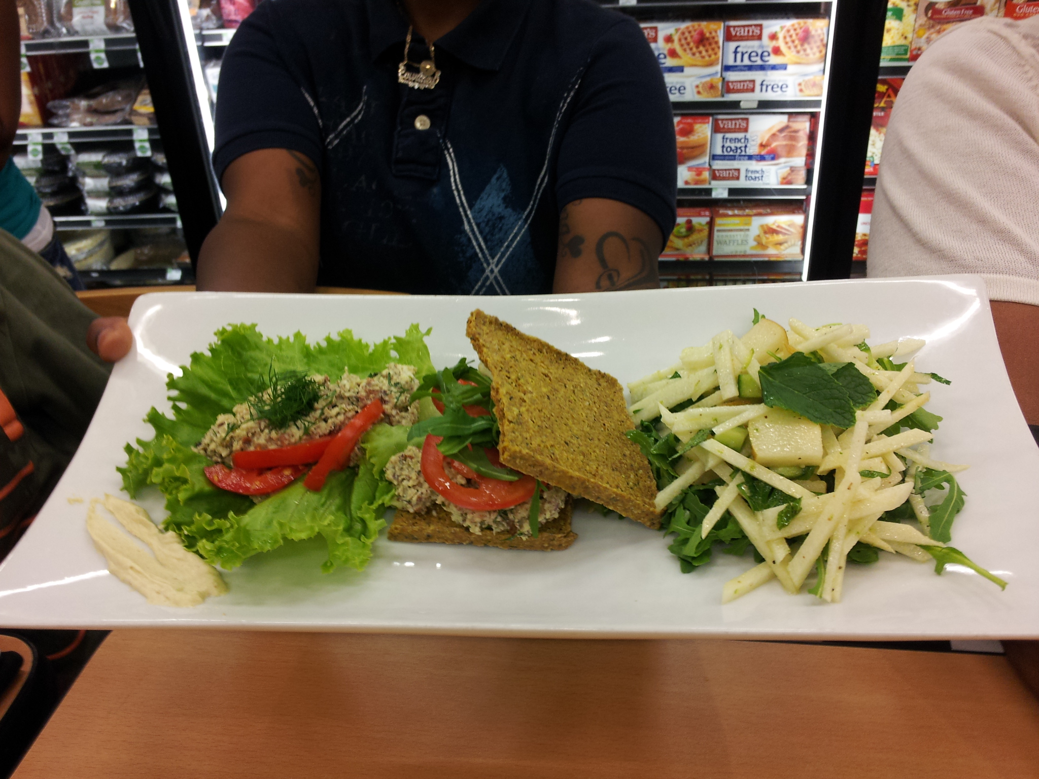 On the menu for the night was a Mock Tuna Sandwich with Stone-Ground Cashew Mayo, Cucumber-Jicama Asian Pear Salad, Thai Pumpkin Soup and Carrot Mango Gelato. The mock tuna sandwich was especially tasty. Instead of using fish, Chef Stacey substituted with what the fish eat — several type of kelp and seaweed. It did have that slight tuna fish taste, and I decided that I actually liked the mock tuna sandwich better than the real thing. With the addition of the cashew mayo, it was spot on.