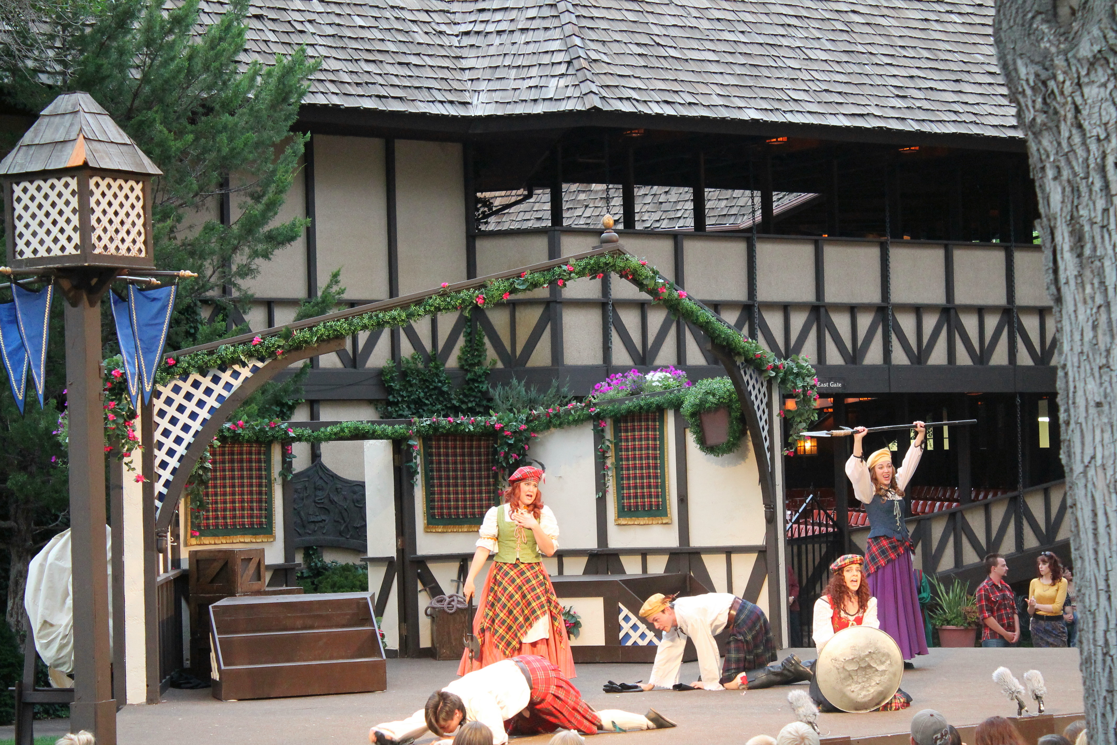 To grab a quick bite of food before the performance, the festival’s Sweet Shoppe offers an extensive menu of affordable, light bites. I opted for a tasty summerberry tart and hot English tea for $4, but they also have more substantial fare that would constitute a full meal. Of course, if you will be watching Titus Andronicus, you might want to pass on the meat pie.