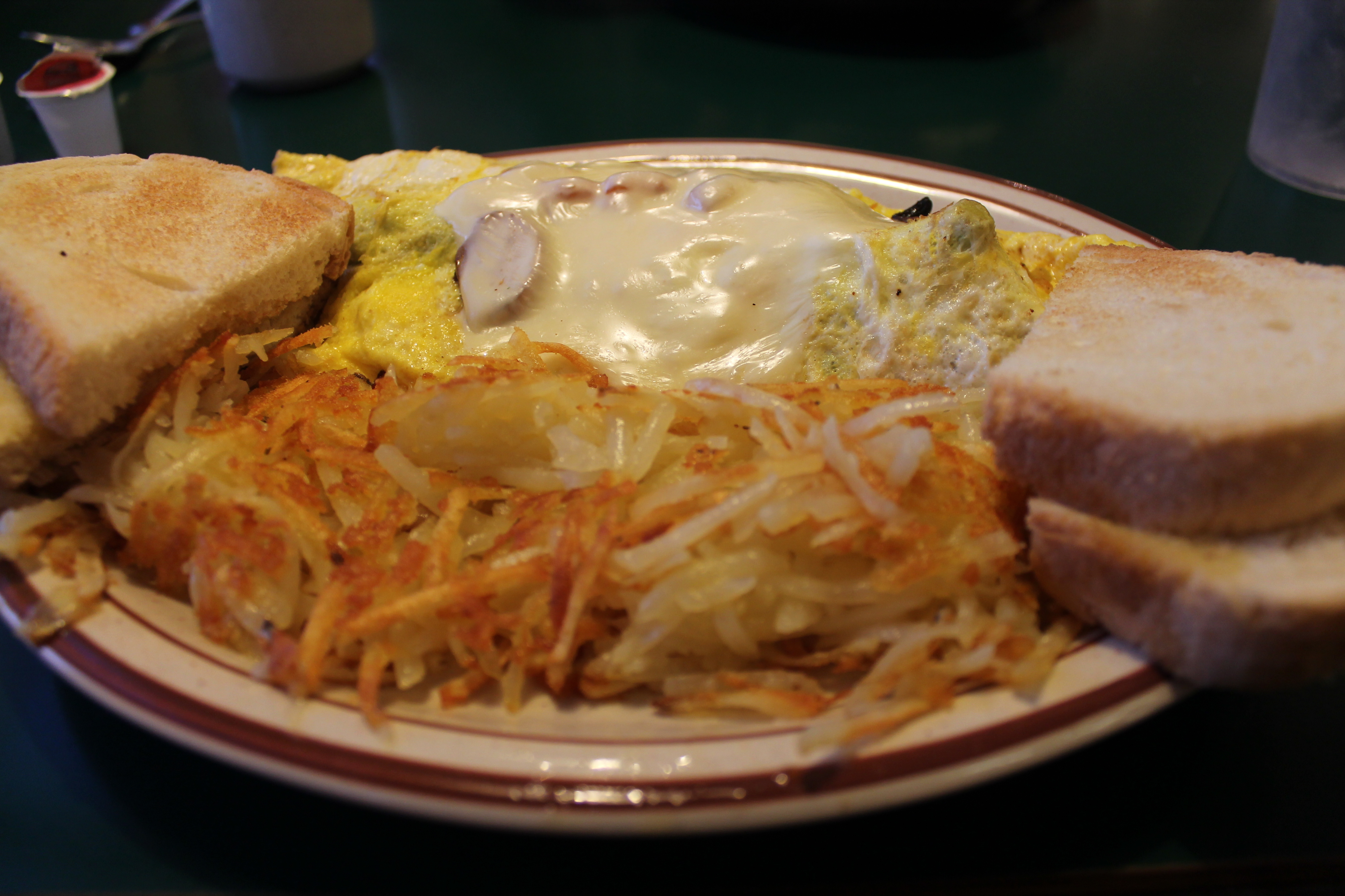 I ate most of this enormous veggie omelet with hash browns and sourdough toast. No wonder I gained about 5 pounds during our week on the road. Thankfully, I am doing a detox diet this weekend.