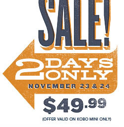Recently Powell’s Books and other indie bookstores have begun to sell Kobo eReaders as an alternative to the Kindle and the Nook. There’s the Kobo Glo eReader, which retails for $129.99 and is comparable in features to the Kindle Paperwhite and Nook Simple Touch. My personal favorite, however, is the Kobo Mini eReader, which markets itself as the world’s smallest full-featured eReader. The Mini is also much friendlier on the wallet, with a standard retail price of $79.99. But on November 23 & 24 only, it will sell for only $49.99.