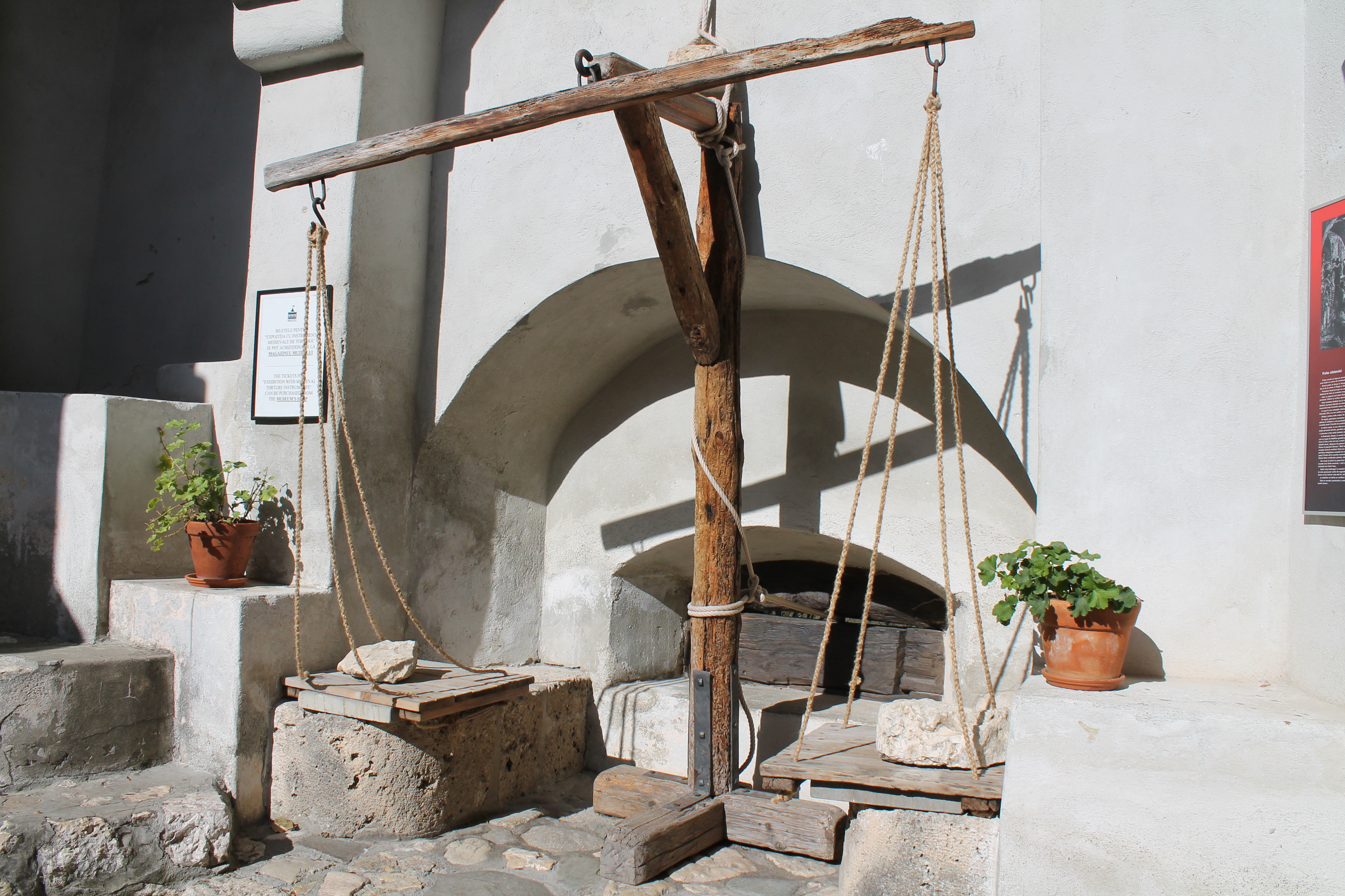 At Bran Castle, there’s also a small display of medieval torture instruments. This scale was used to determine if a woman was a witch. The accusers would guess the woman’s weight and add stones and a Bible to one side of the scale to equal their guess. The accused would sit on the opposite side, and if she was found to be lighter than the stones and Bible she was confirmed guilty.