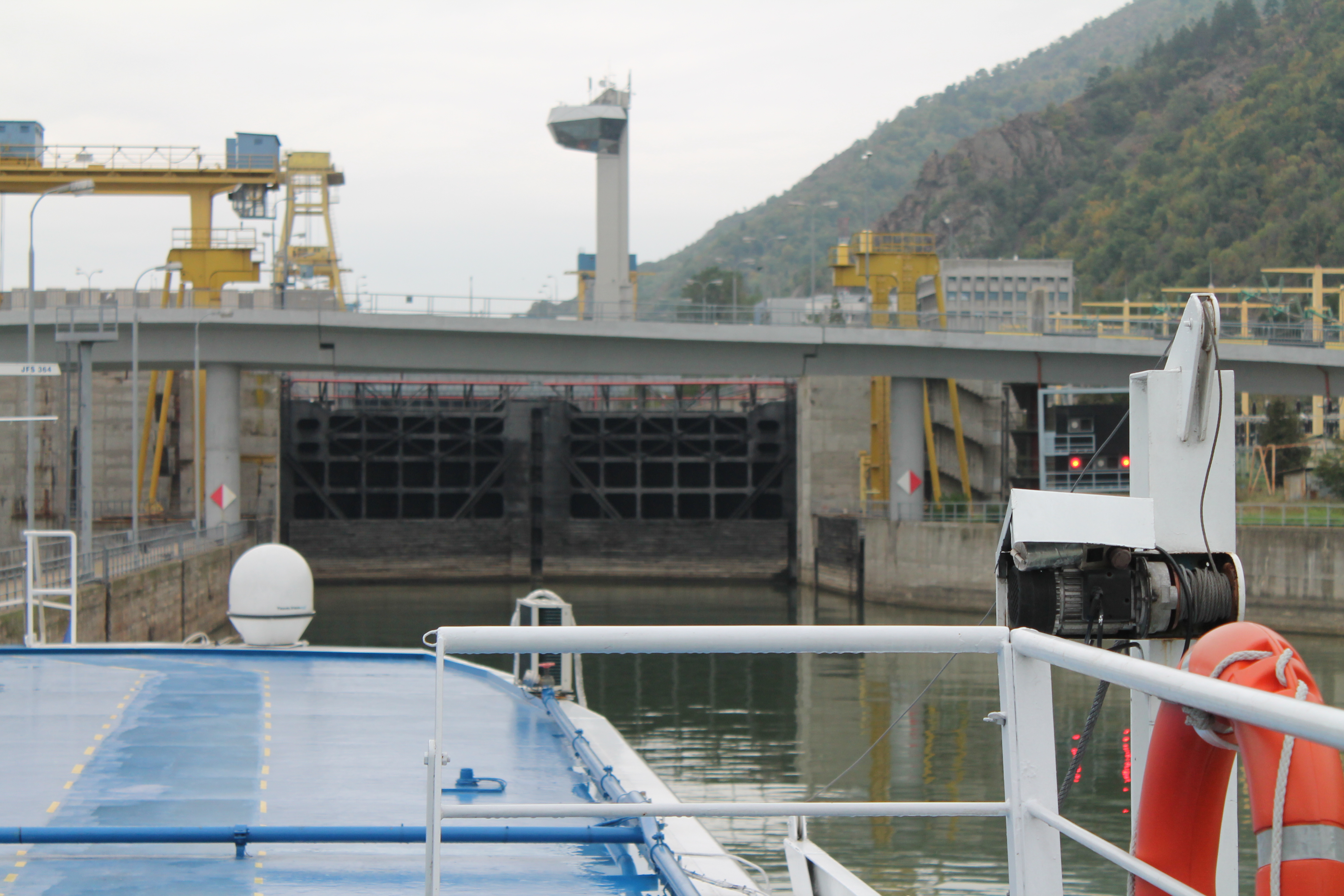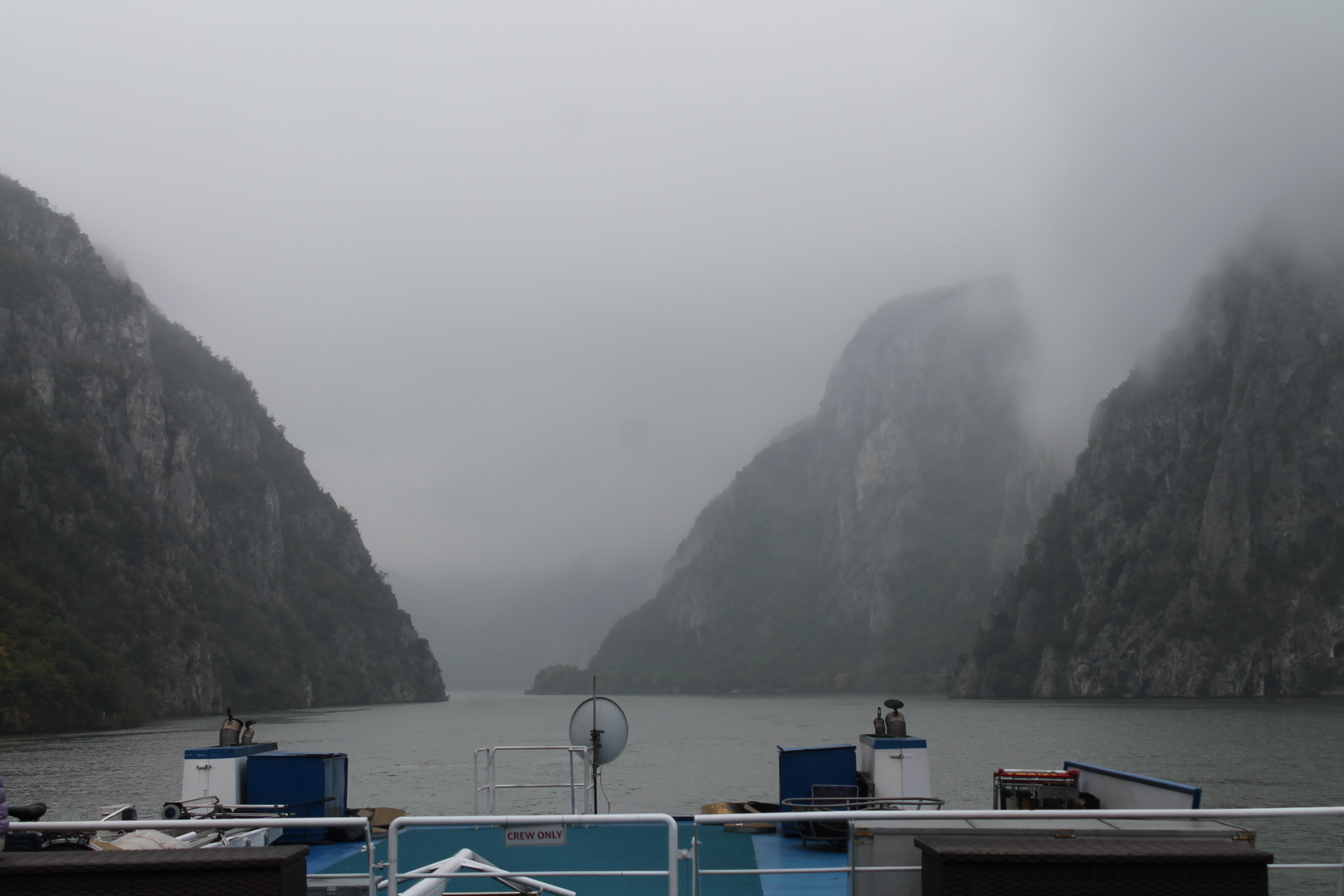 A portion of the border between Serbia and Romania is a narrow gorge on the Danube River aptly named the Iron Gates. When travelling upstream, boats must pass through a series of locks associated with Djerdap Dam, which were only built in the 1970s and 1980s. A thick layer of fog when we passed through the first lock at 2 AM added to the eeriness. As we were stuck in the second lock for several hours, we were especially fortunate that an earthquake didn’t hit, as we’d have no place to go.