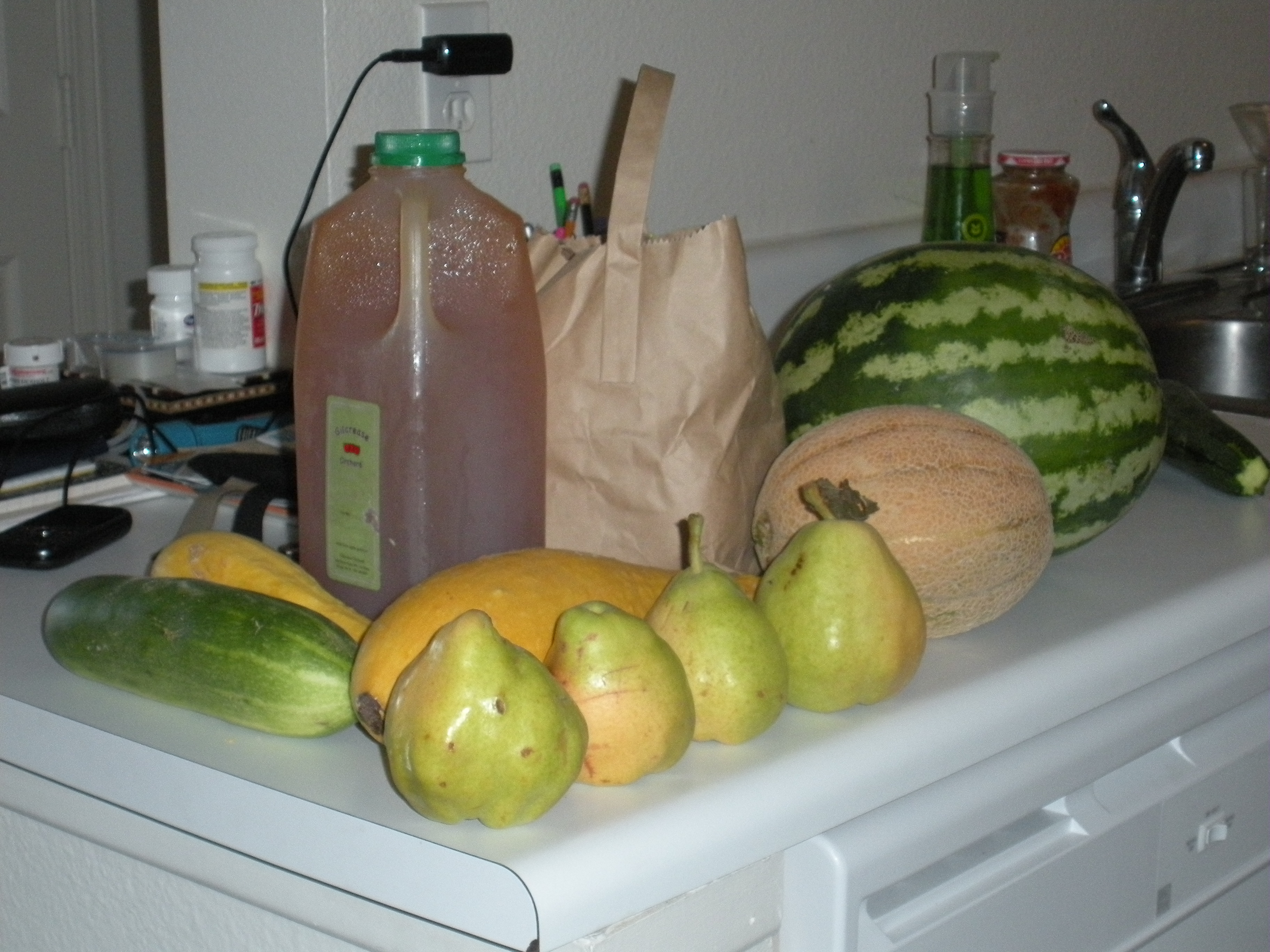 I was quite pleased with how far my $40 went – organic spinach and garlic fettuccine, dates, kalamata olive bread, arugula, cucumber, lemons, jalapenos, coffee, lemon balm/nettle/dandelion tea blend, and cherry tomatoes. Good eating for at least couple days and every thing comes from either southern Nevada or just across the border in eastern California!